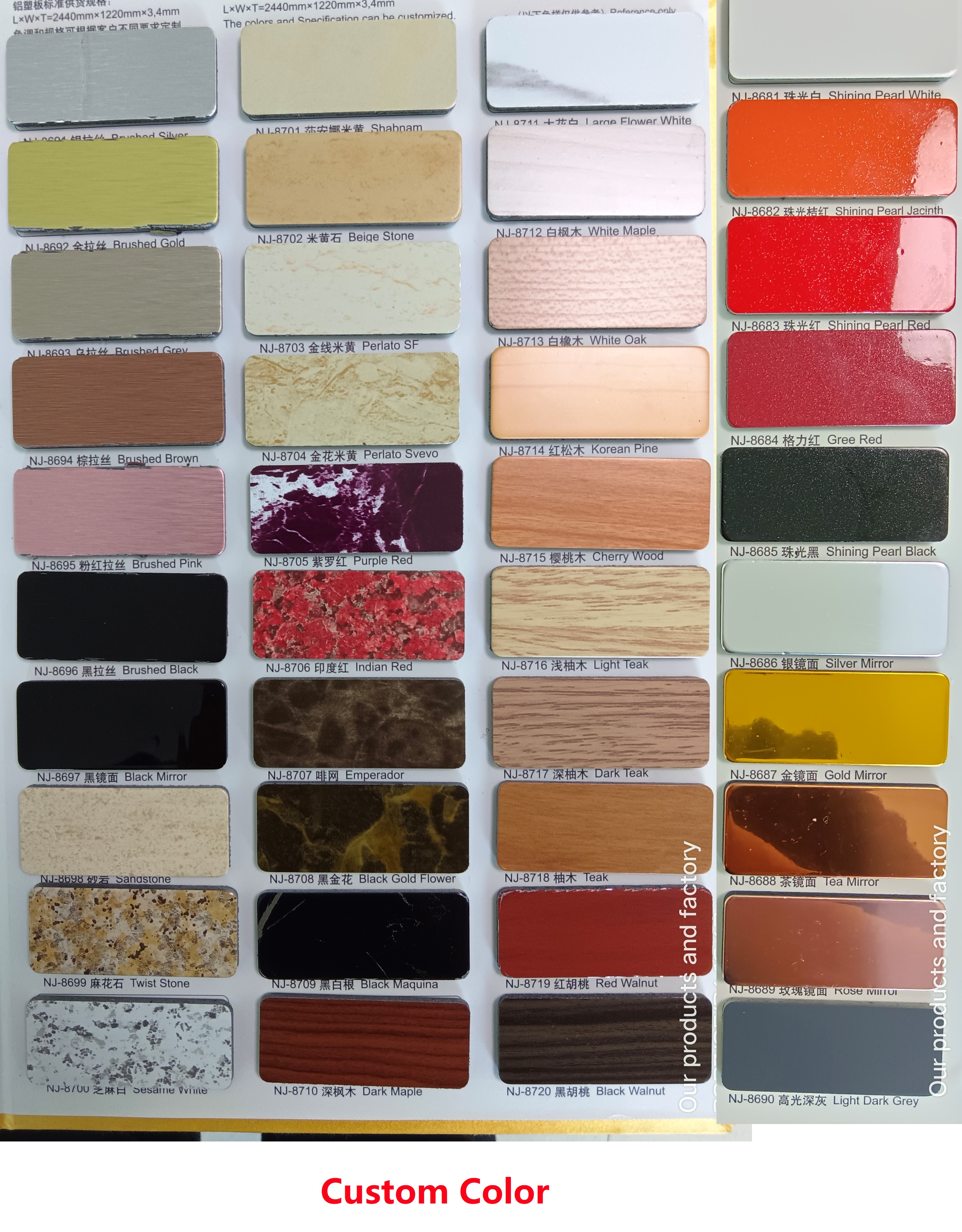 브러시드 레드 알루미늄 복합 패널은 폴리에틸렌 코어 재료에 영구적으로 접착된 부식 방지 알루미늄 시트 2개로 구성됩니다. 전면 알루미늄은 PE(폴리에스테르) 페인트로 코팅되어 있습니다. 유연성과 차음 성능 등이 뛰어나기 때문입니다.